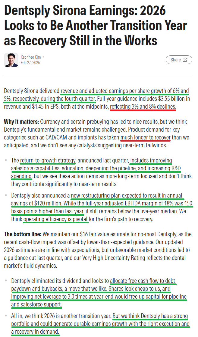 A couple of quarters of clean, consistent execution will go a long way for Dentsply, something that has been hard to come by over the past several years of operational hiccups. With the right pieces now in place, a new CEO running at full speed, and the business approaching an inflection point, it won’t take much more than modest execution and improvement to drive meaningful multiple expansion as the narrative shifts away from the troubles of the past and toward where the puck is going next.