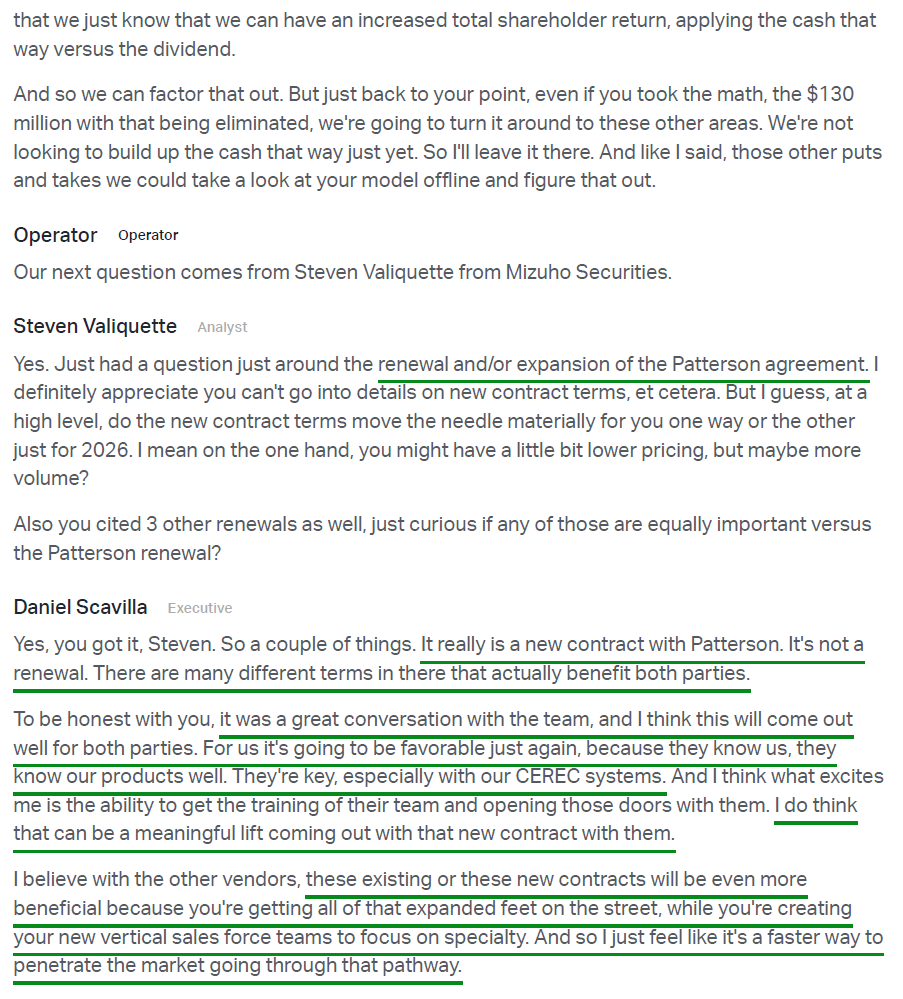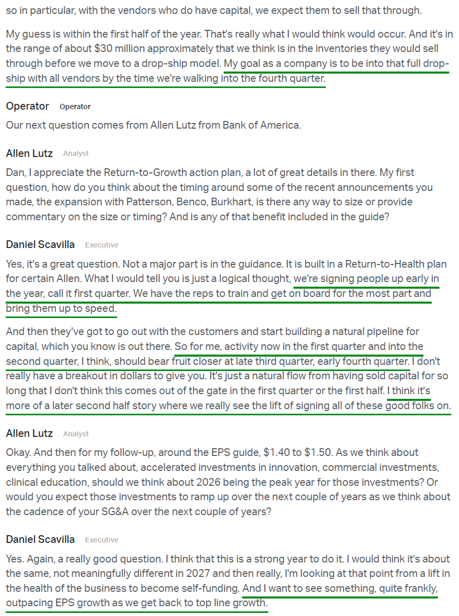 4) XRAY made progress repairing distributor relationships during the quarter, re-engaging and expanding distribution agreements with Patterson Dental, Benco Dental, Burkhart Dental Supply, and A-dec while continuing to advance discussions with additional dealers. Re-engaging the dealer channel is seen as a critical lever to broaden portfolio reach and improve go-to-market effectiveness in the US, with meaningful lift from these agreements expected in the back half supporting stabilizing growth over the medium term. The structure of these new agreements has also shifted to a drop ship business model, a move expected to benefit both parties, with the goal of full adoption across all vendors by 4Q.