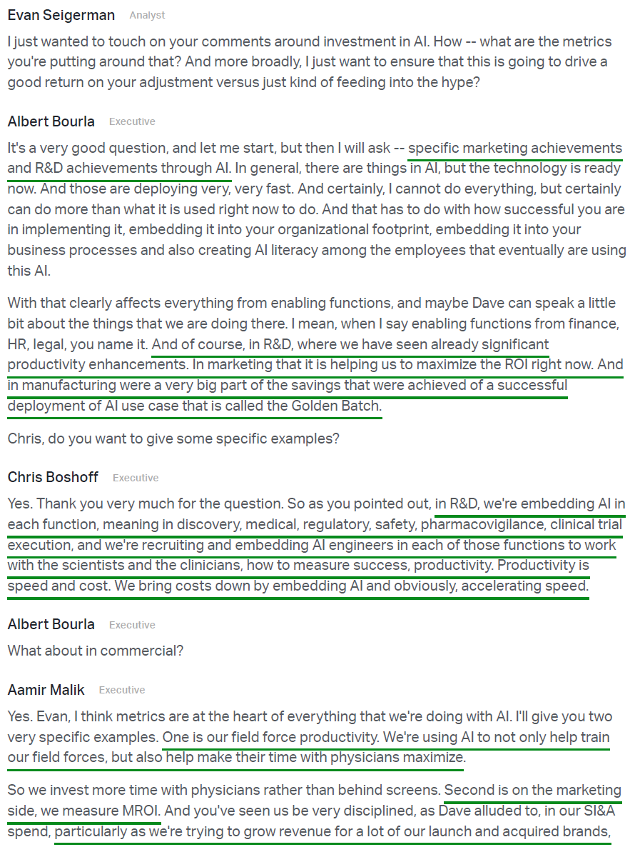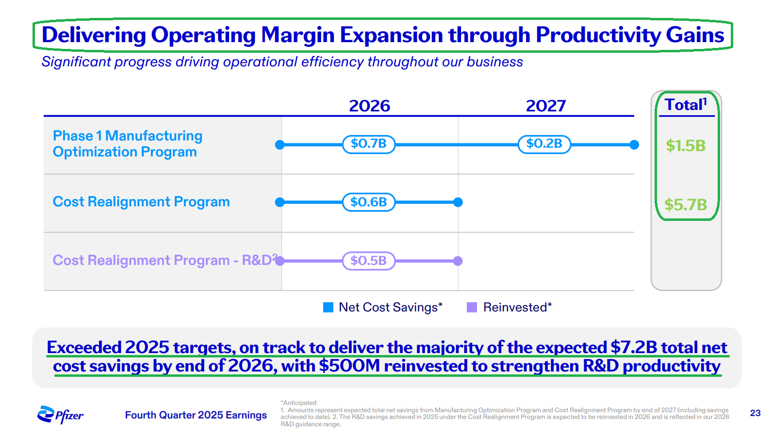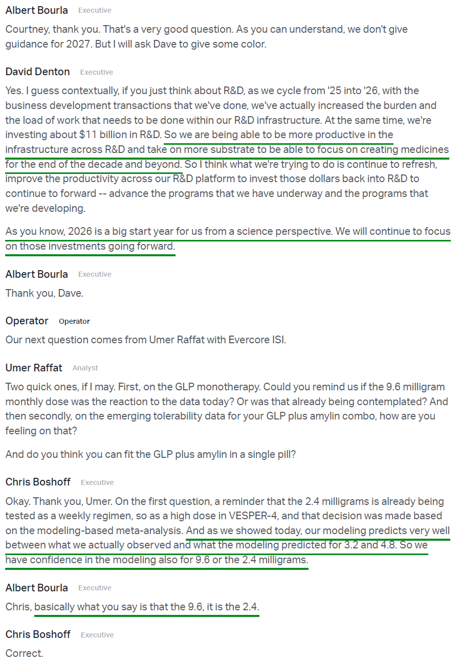 7) Management continues to execute against its cost realignment program, exceeding 2025 targets and now on track to deliver the majority of the $7.2B in total net cost savings by end of 2026, a full year ahead of schedule, with ~$500M of those savings being reinvested to strengthen R&D productivity.