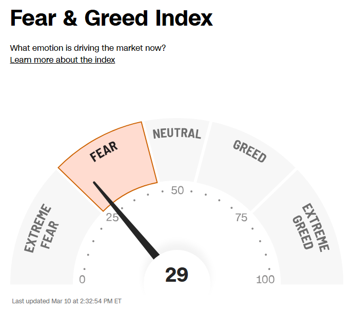 The CNN “Fear and Greed Index” ticked down to 29 this week from 38 last week. You can learn how this indicator is calculated and how it works here: (Video Explanation)