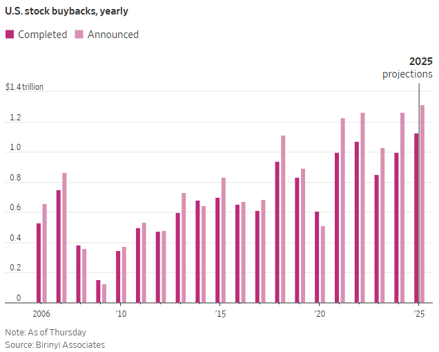 - American Companies Are Buying Their Own Stocks at a Record Pace (wsj)