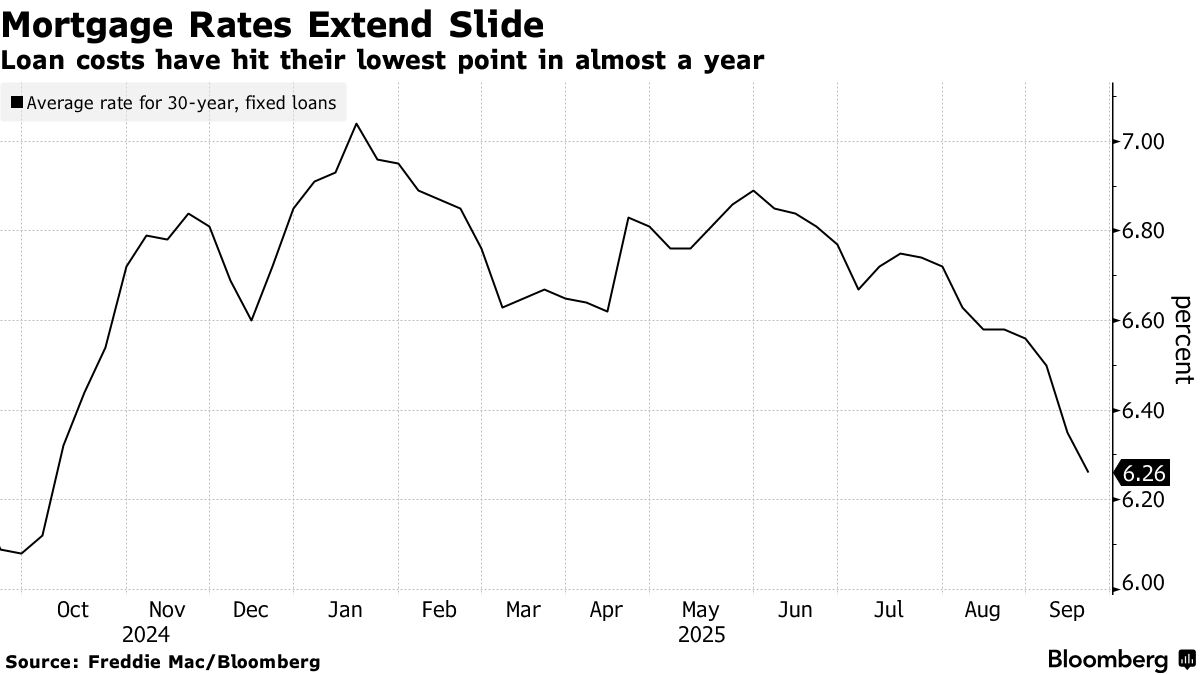 - US Mortgage Rates Decline to Lowest Point in Nearly a Year (bloomberg)
