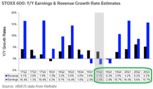 Source: Lipper Alpha Insight While the Q2 2019 estimates for Euro Stoxx 600 ticked up modestly in the past week (from -2.6% to -2.4%), the real story is the forward EPS estimates for the next 12-18 months.When you look out past Q3 2019, 3 of the 4 subsequent quarters are projecting meaningful double-digit year on … Continue reading European (Stoxx 600) Forward Earnings Estimates Strong