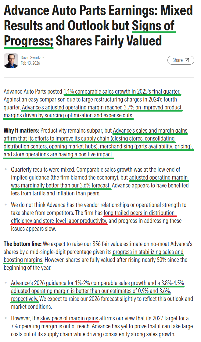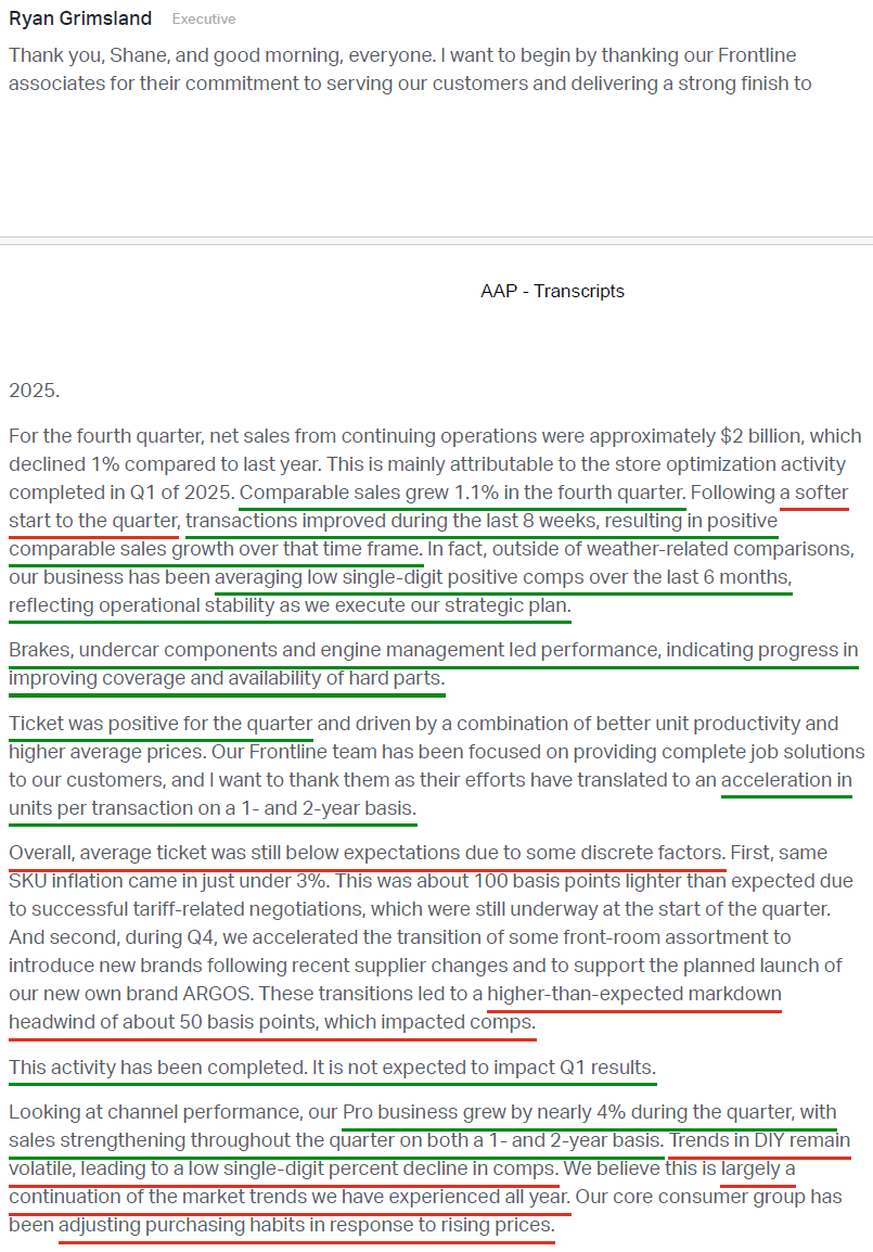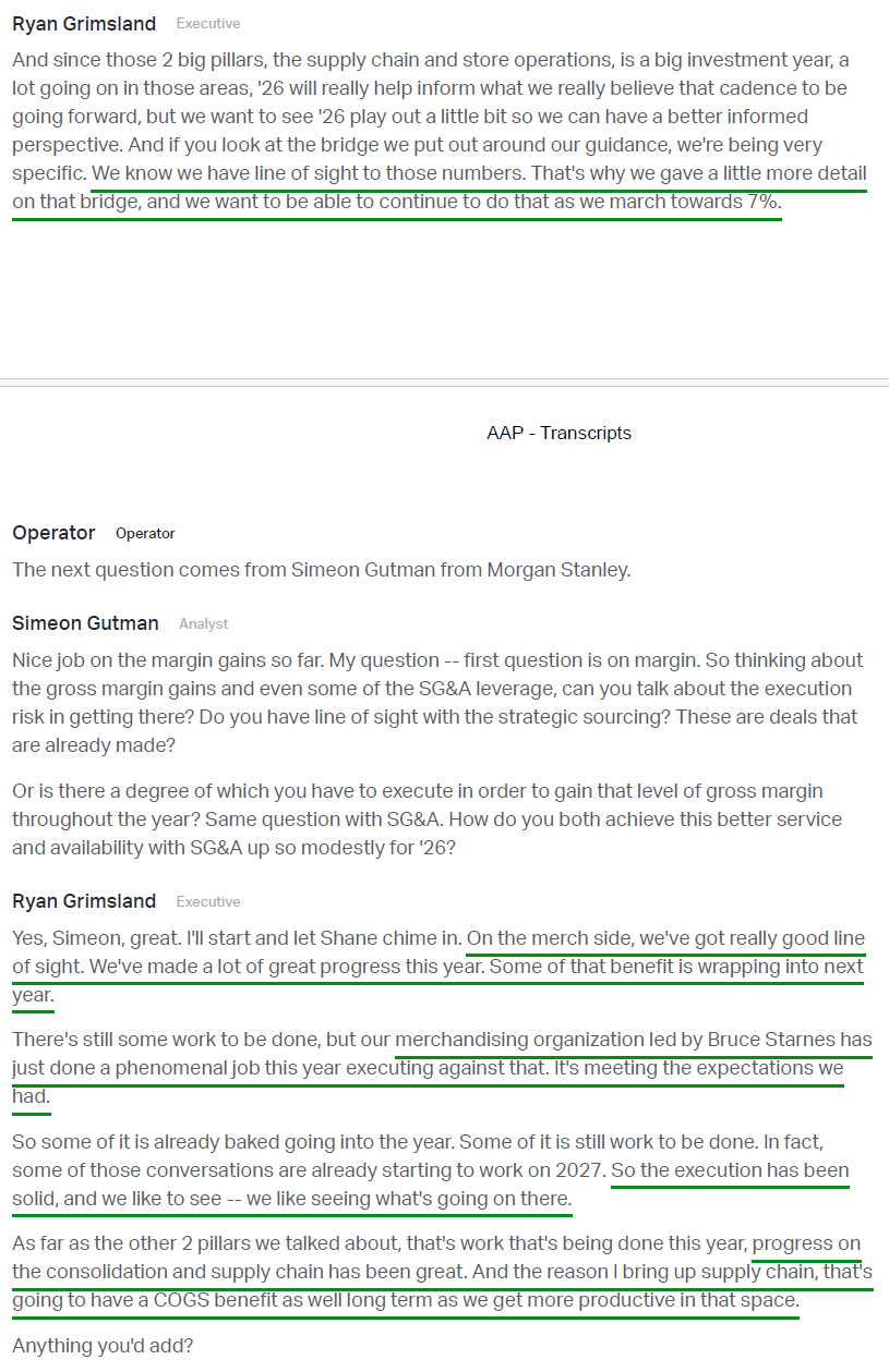 Our confidence in the AAP turnaround continues to work higher. It may take some time, but when operating leverage meets a proven operator and structural demand drivers, good things tend to happen.
