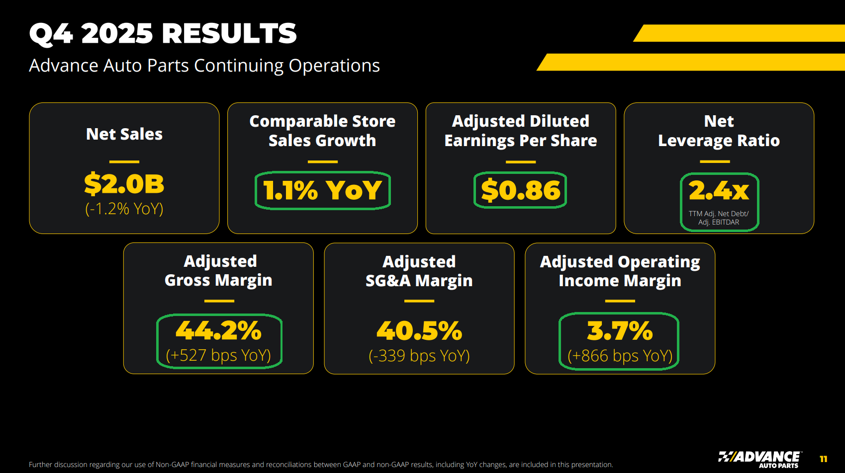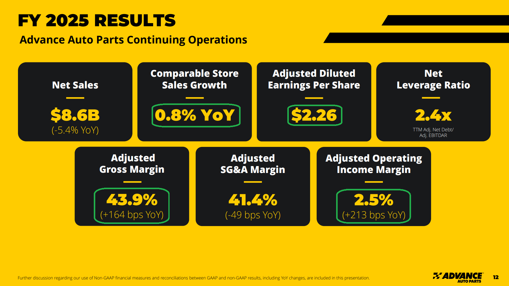 Advance delivered +0.8% comp growth in 2025, inflecting positive after three consecutive years of declines.