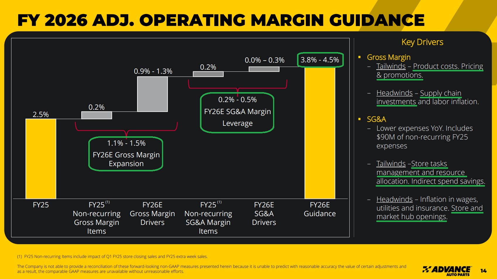 For context, margins troughed at just 0.4% in 2024, the weakest level in more than 20 years and a far cry from Advance’s historical 9% to 11% range and the 19% to 20% posted by peers AutoZone and O’Reilly.