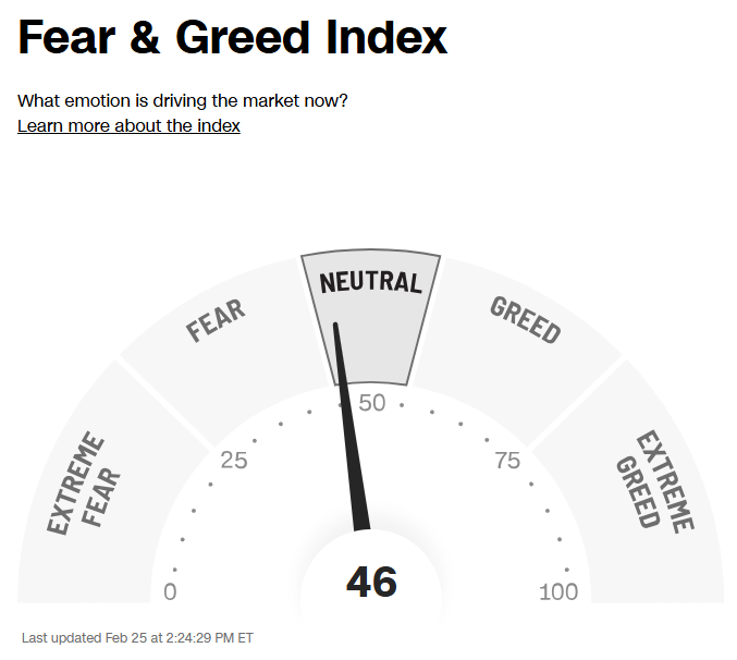 The CNN “Fear and Greed Index” ticked up to 46 this week from 36 last week. You can learn how this indicator is calculated and how it works here: (Video Explanation)