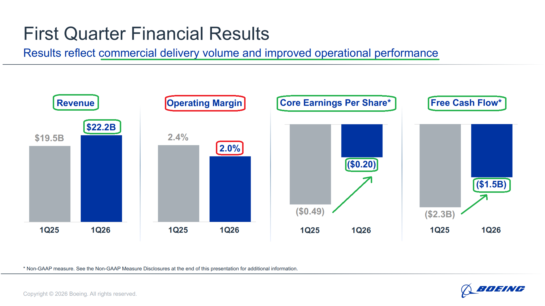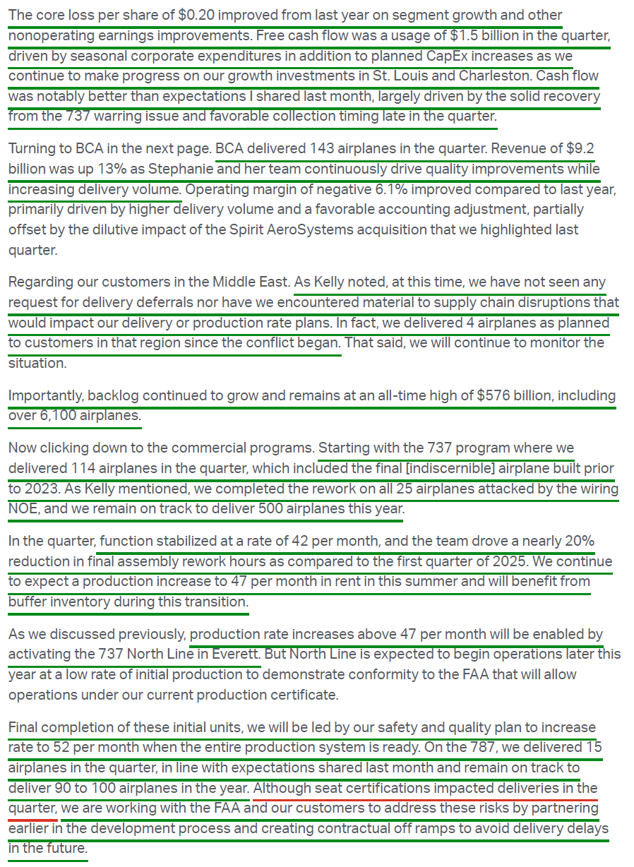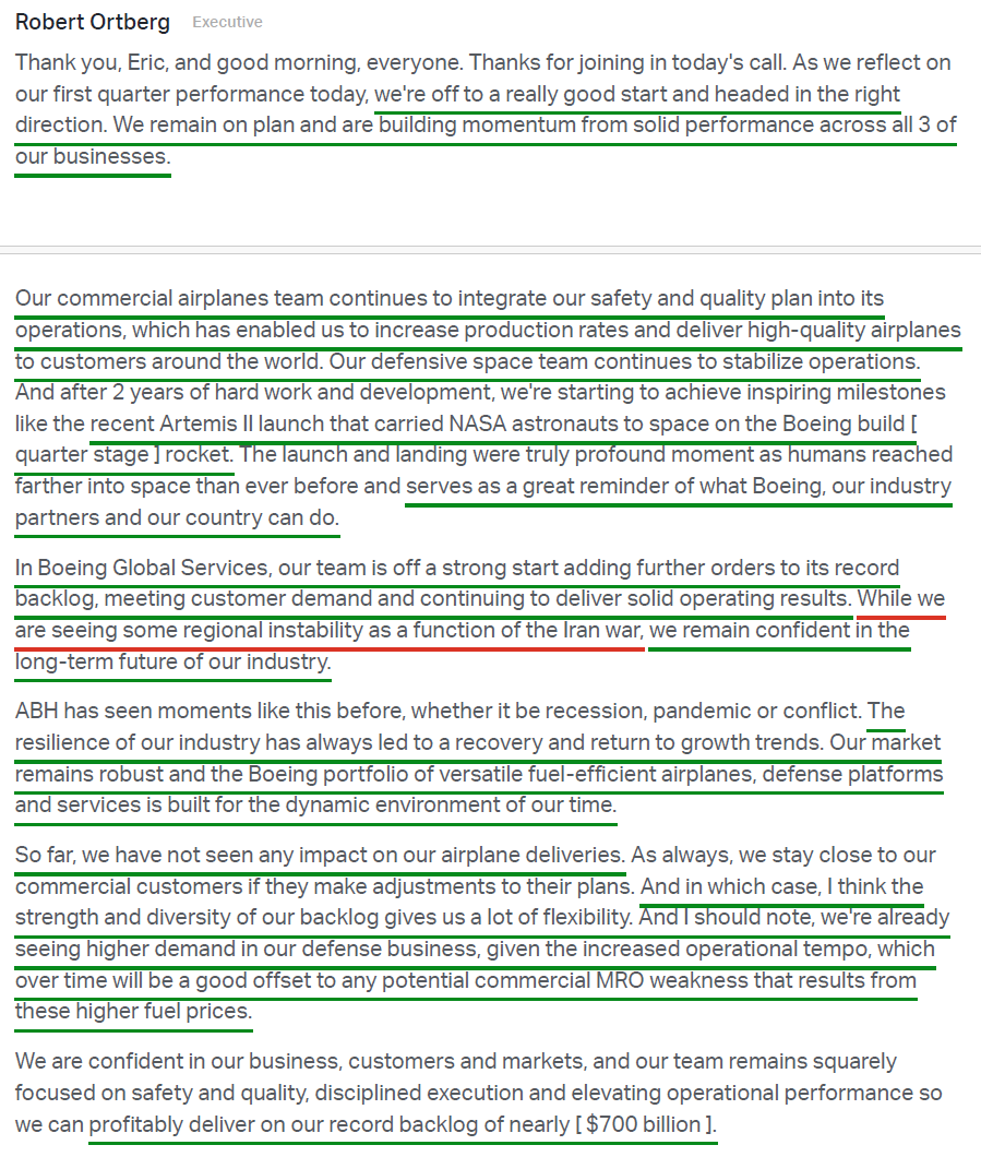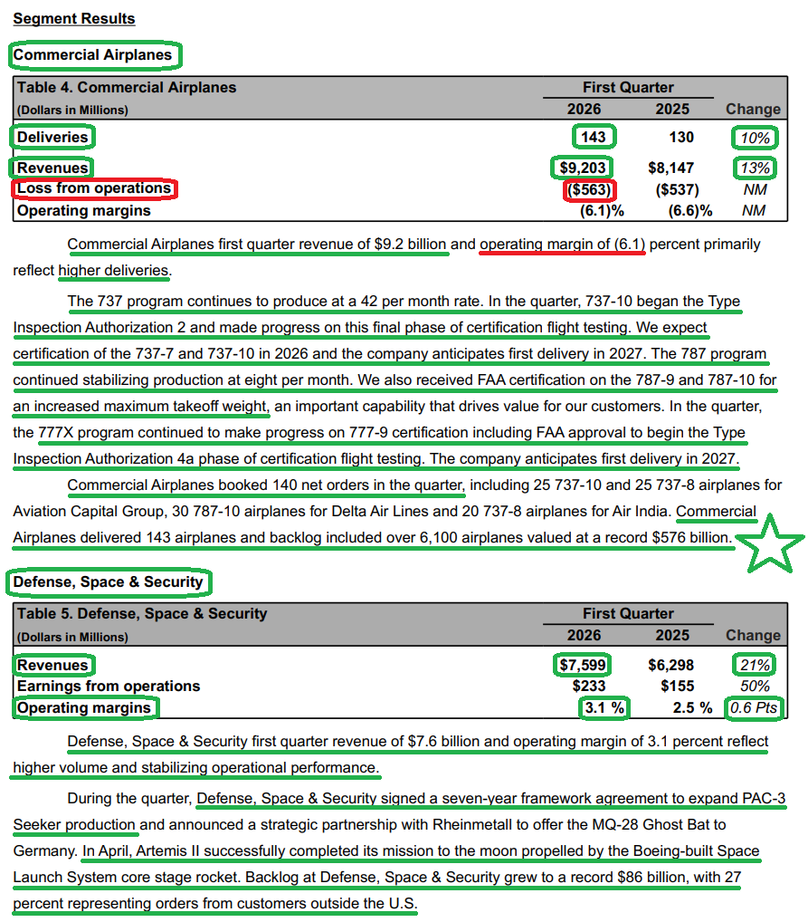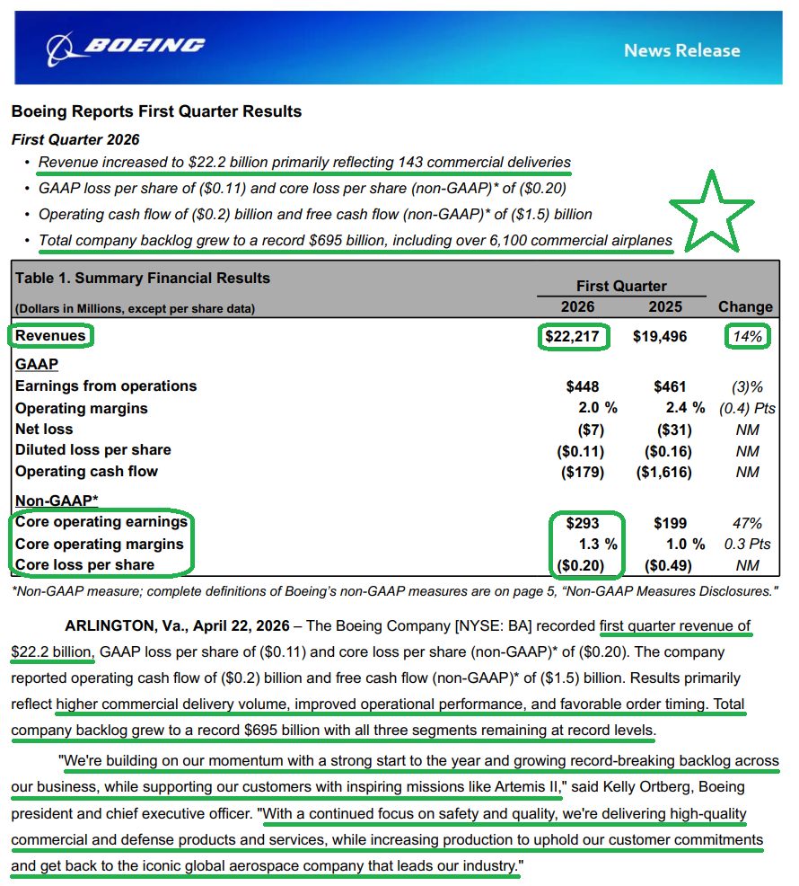 Boeing kicked off our Q1 earnings season on the right foot, with every metric that matters in this multi-year recovery moving in the right direction.