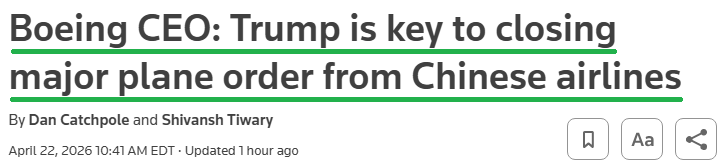 Beyond the numbers, the setup for the back half looks as clean and catalyst-rich as anything we’ve seen in years. We’re finally closing in on the long-awaited Trump-Xi summit (set for May 14-15), the key driver behind Boeing reportedly closing on one of the largest orders in its history: ~500 737 MAX jets, along with discussions for another ~100 widebody aircraft, including 787s and 777Xs. As we’ve said before, a Boeing order has increasingly become the price of admission in US trade negotiations. With the world’s greatest salesman setting up shop in Beijing in a few weeks, we’d be surprised if he came home empty-handed.