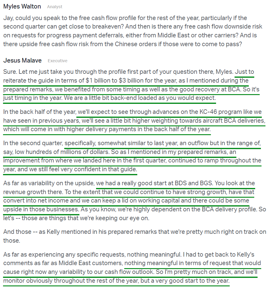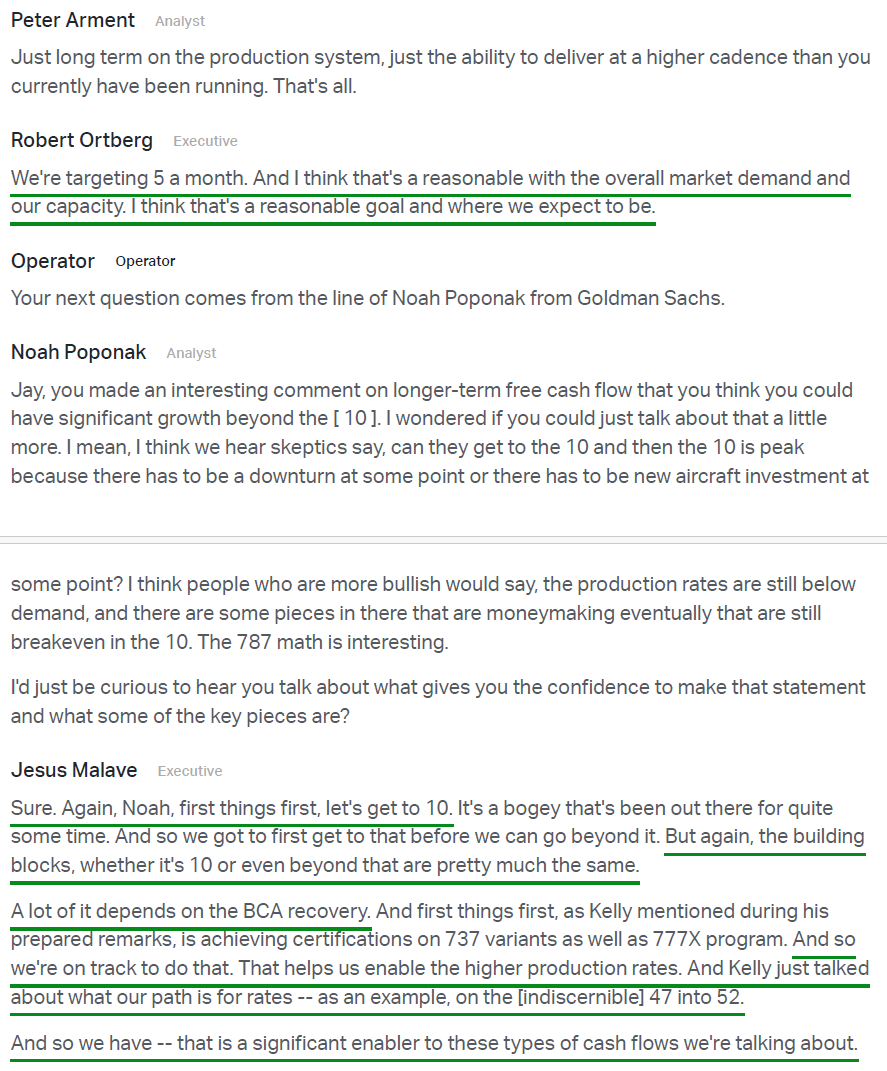 Which brings us to the heart of the thesis: free cash flow. Deliver more planes, generate more cash. Six words that capture the entire turnaround.